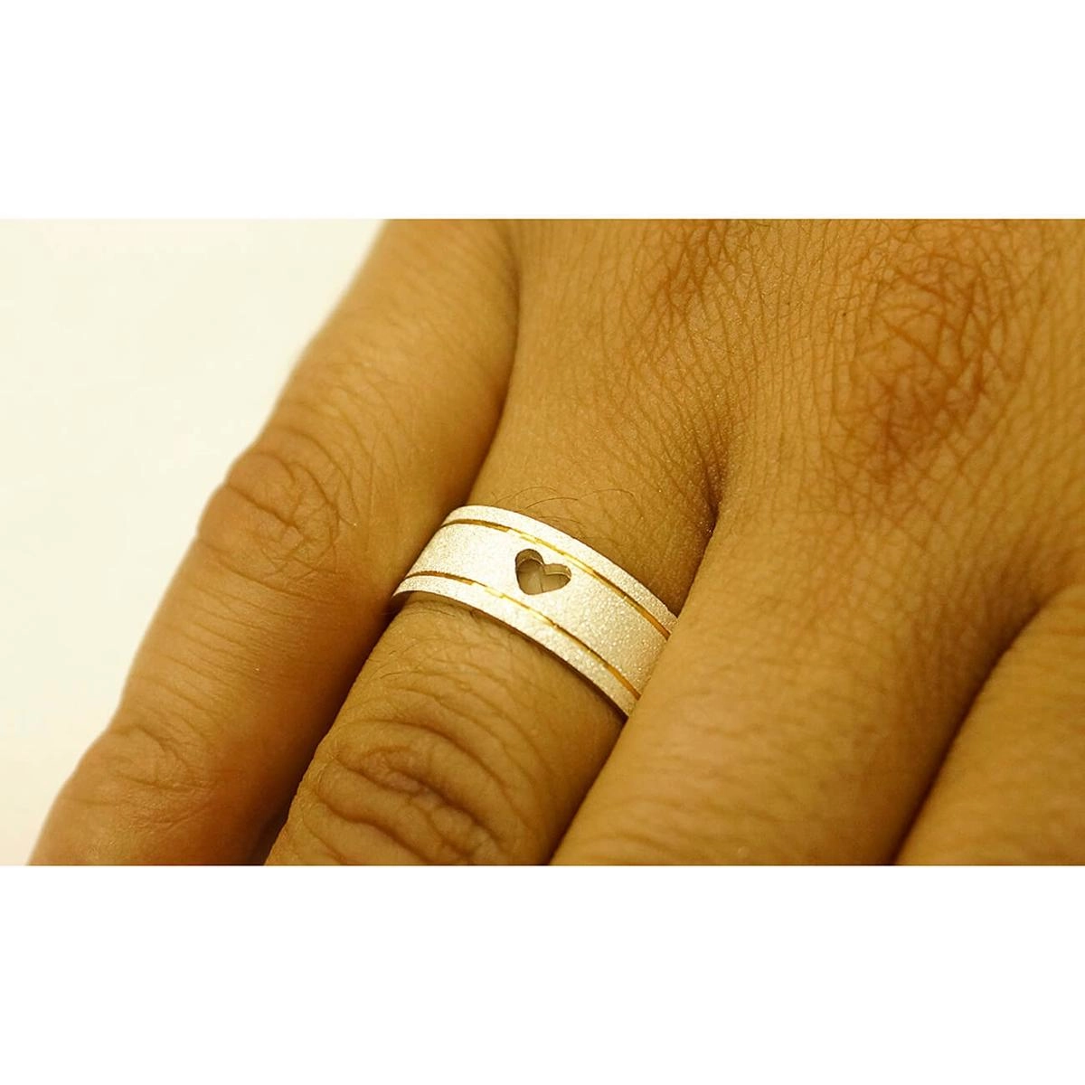 Alianças de Namoro em Prata 12g 7mm Fosca Coração Filete em Ouro. Surpreenda quem você mais ama.