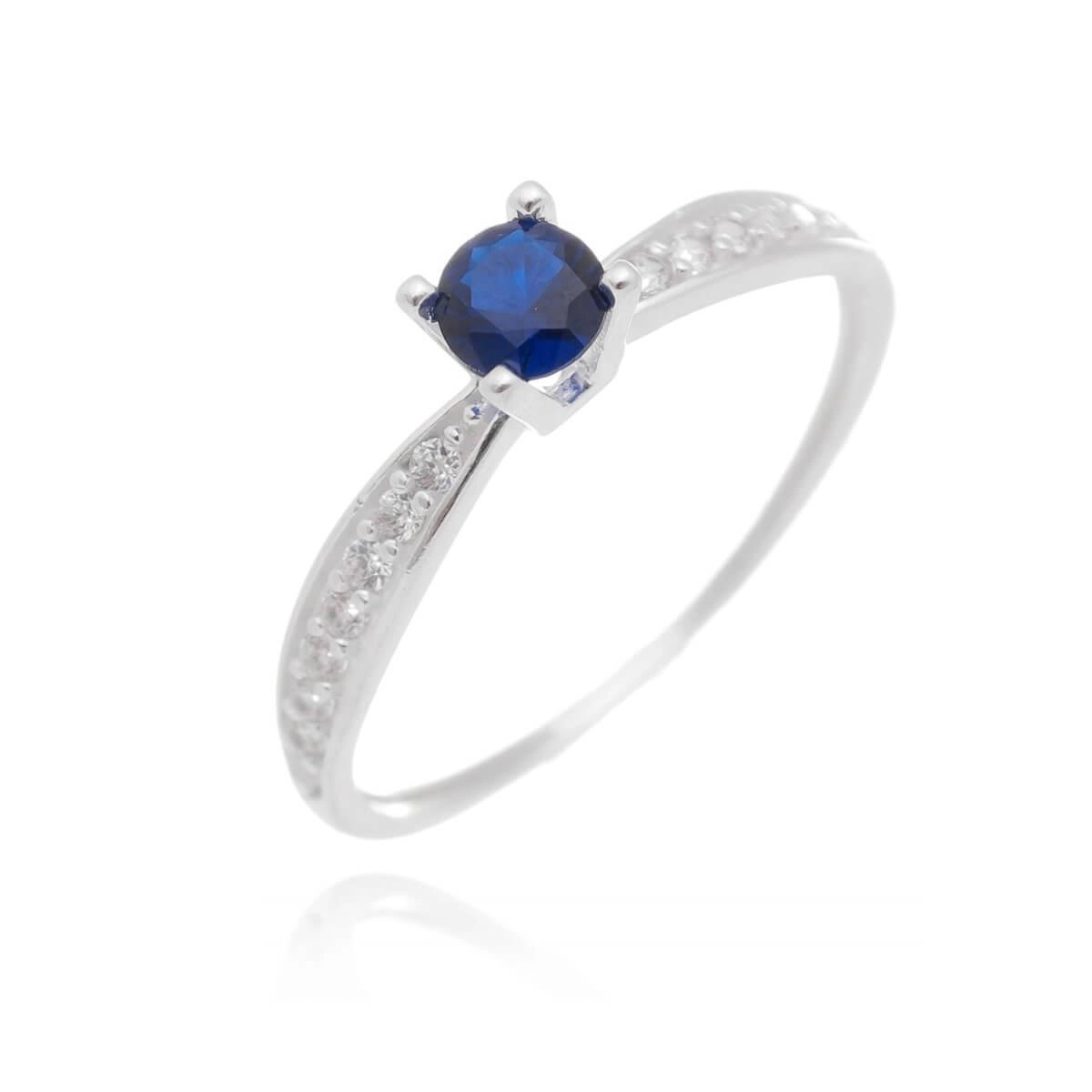 Anel Prata Solitário Azul C/Pedras Laterais 4mm Prata 925