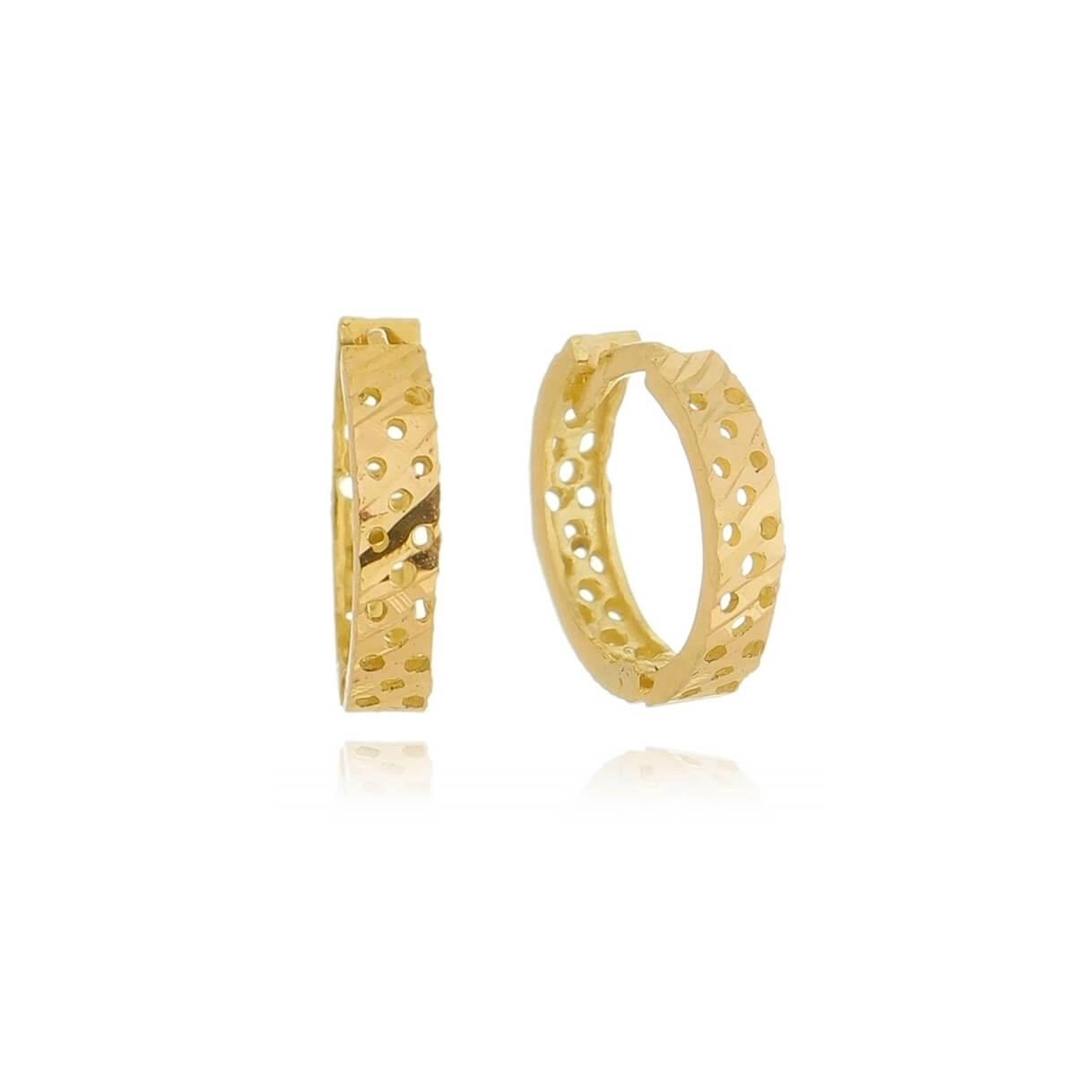 Brinco Ouro 18k Argola 2º Furo Trabalhada 8.50mm