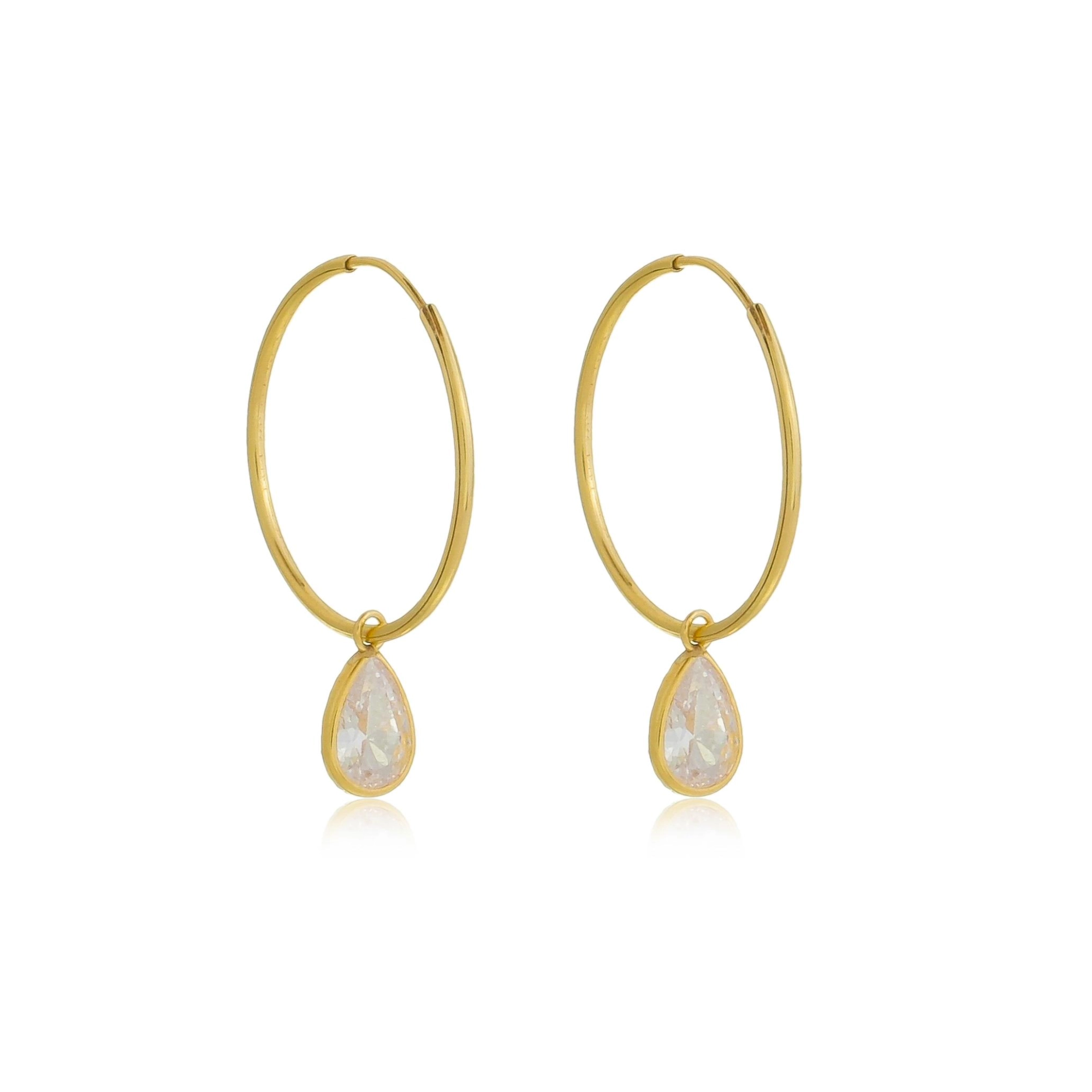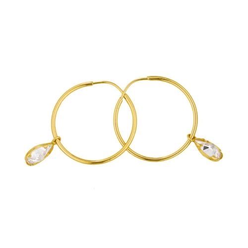 Brinco Ouro 18k Argola Redonda C/Gota 0.90 gramas