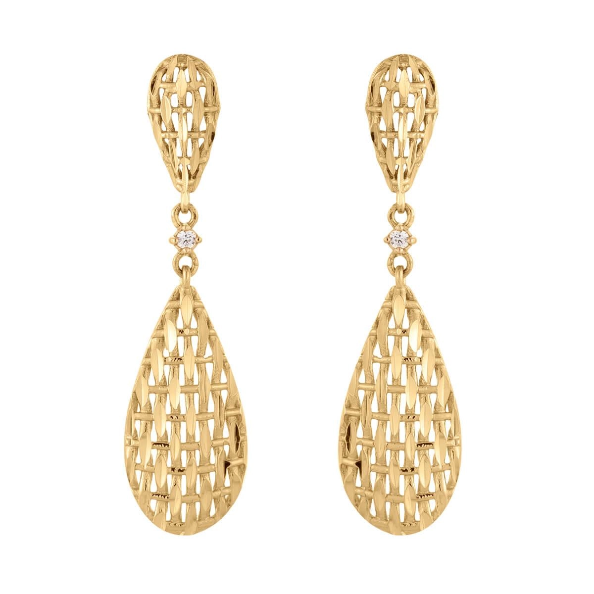 Brinco Ouro 18k Diamantado Pendurado C/Zircônia. Elegante brinco em ouro diamantado, com formato oval e detalhe em zircônia. Oferece elegância e requinte para quem usa. Ideal para presentes.
