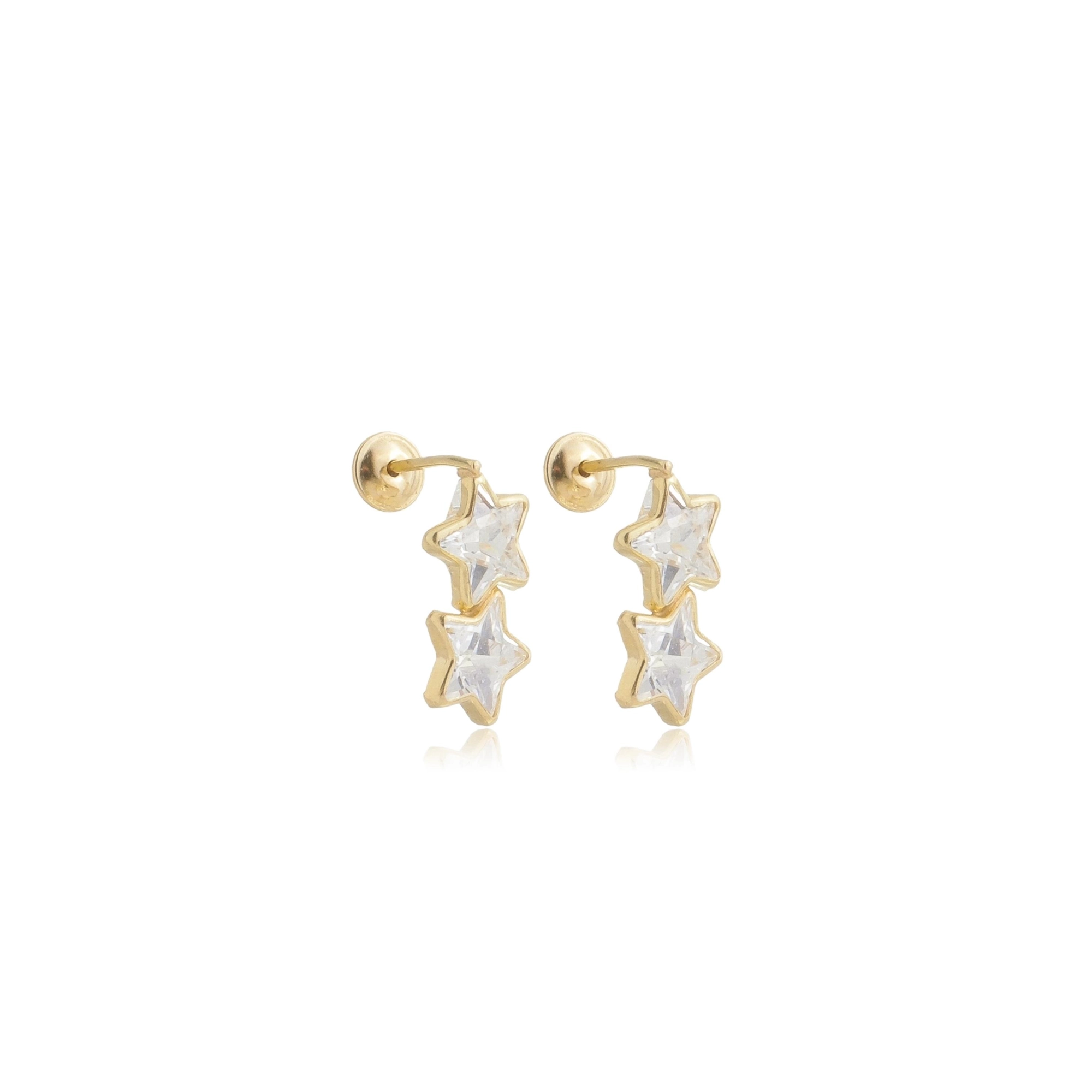 Brinco Ouro 18k Estrela Dupla C/Zircônias