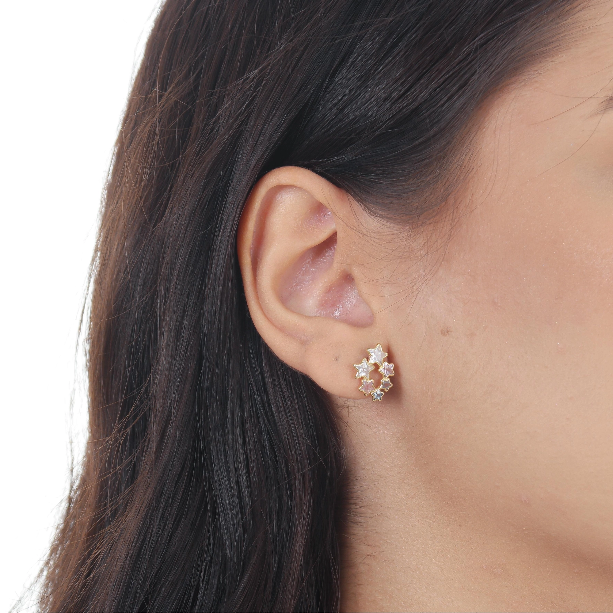 Brinco Ouro 18k Estrelas Coloridas 1.45cm