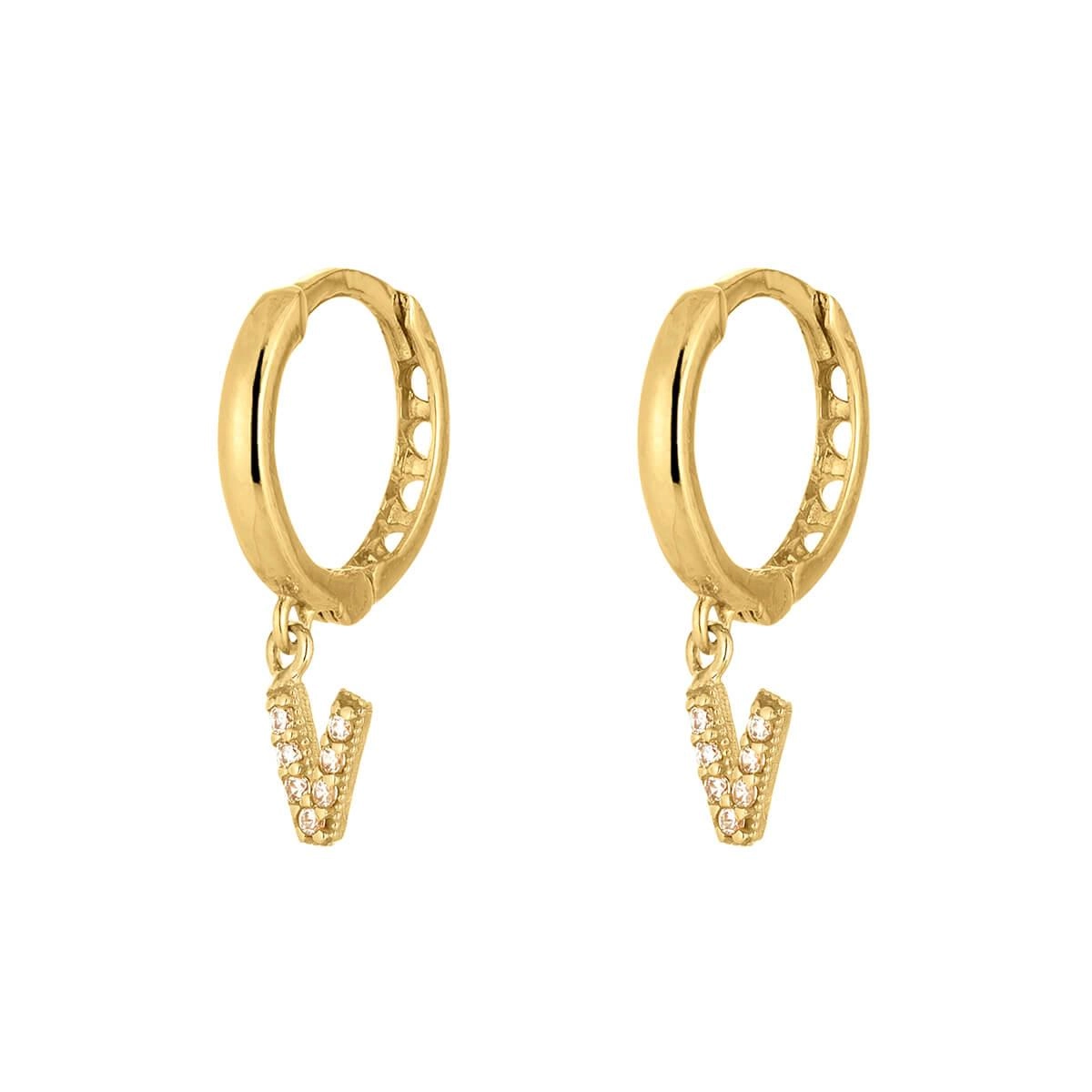 Brinco Ouro 18k Letra C/Zircônia. Delicado brinco em ouro em formato de argolinha redonda e pingente letra decorado com zircônia. Ideal para presentes.