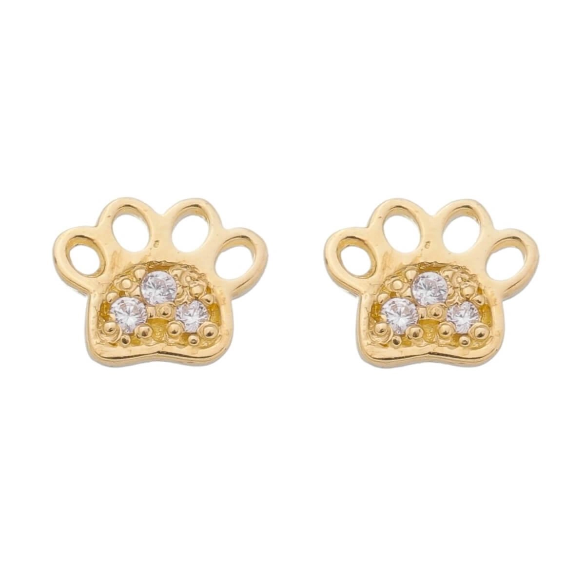 Brinco Ouro 18k Patinha C/Zircônia 6mm. Lindo brinco em ouro com formato de patinha de pet e decorado com delicadas zircônias. Sugere amor e delicadeza.