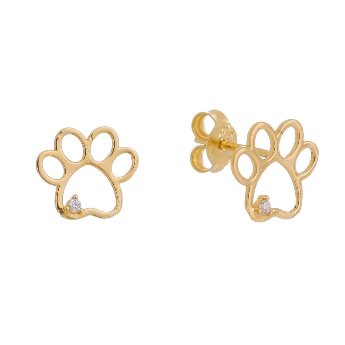 Brinco Ouro 18k Patinha C/Zircônia 9mm. Lindo brinco em ouro com formato de patinha de pet vazada e com delicado detalhe em zircônia. Sugere delicadeza e oferece toque pessoal à composição.
