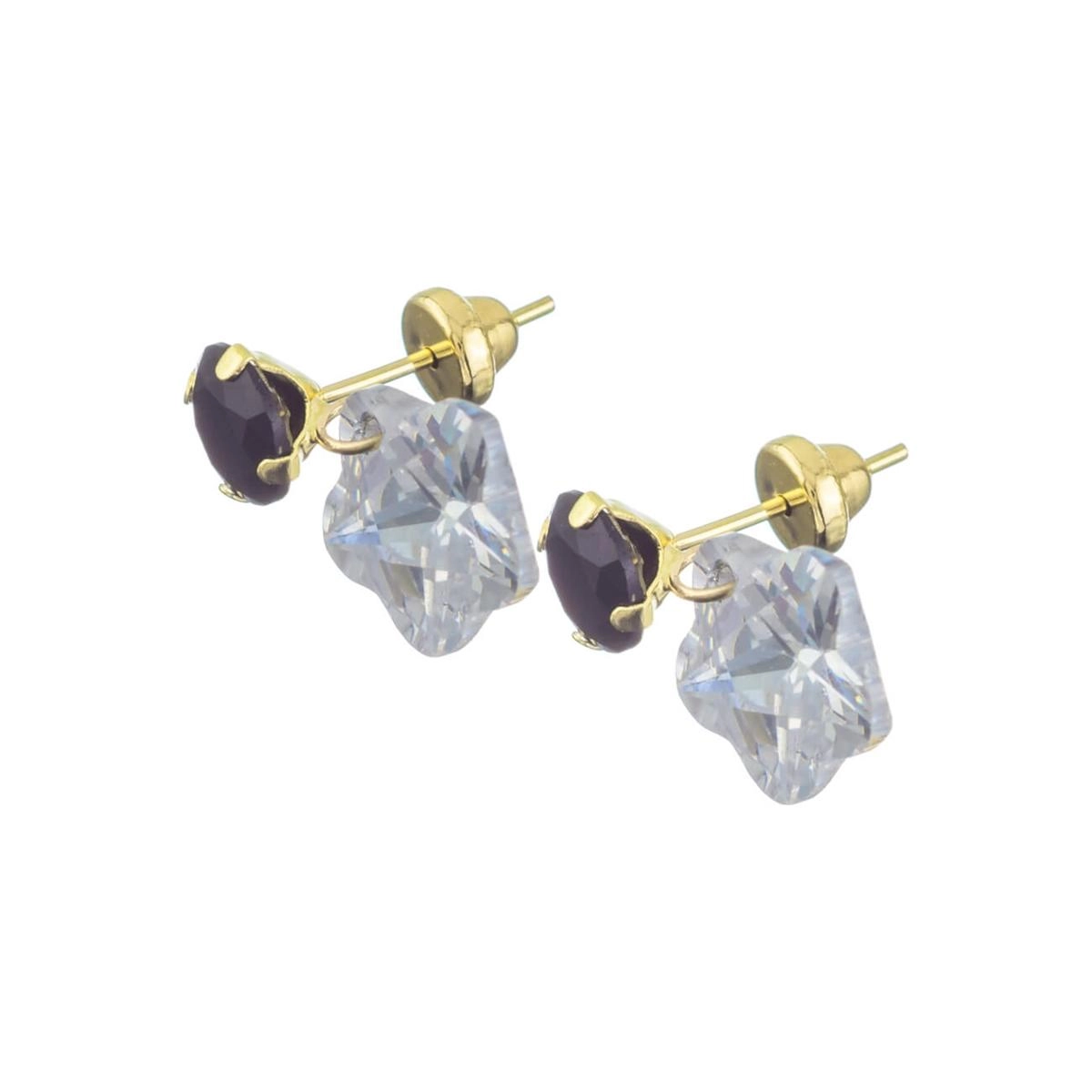 Brinco Ouro 18k Zirconia 5mm C/ Flor Pendurada 7mm 1.65 gramas