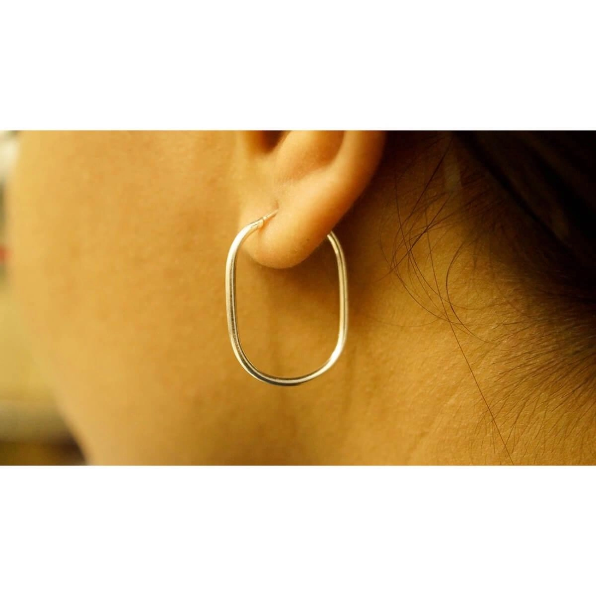 Brinco Prata Argola Oval O Par 28mm. Peça elegante que sugere delicadeza e graciosidade.