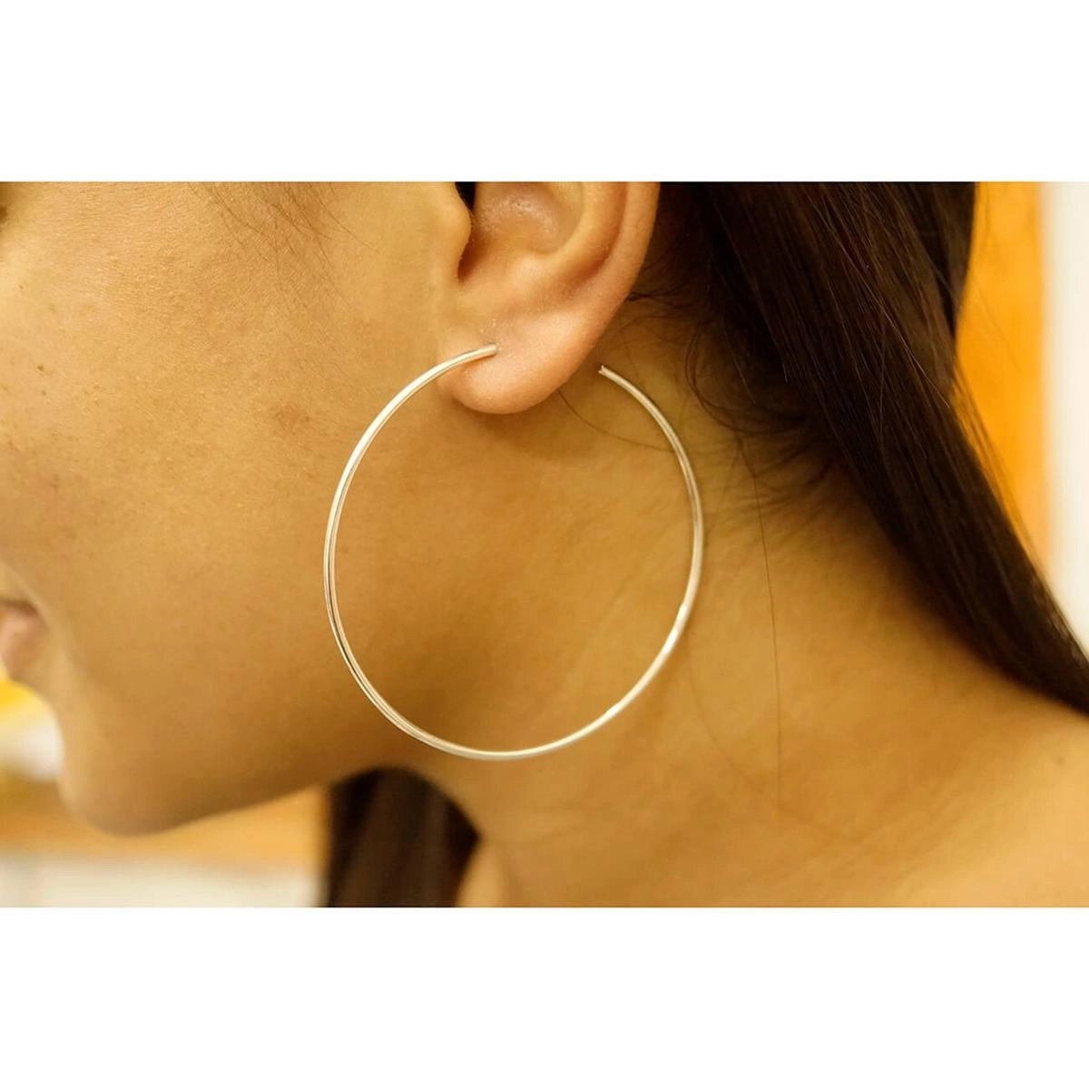Brinco Prata Maxi Brinco Argola 6.2cm Prata 925. Peça elegante que sugere delicadeza e graciosidade.