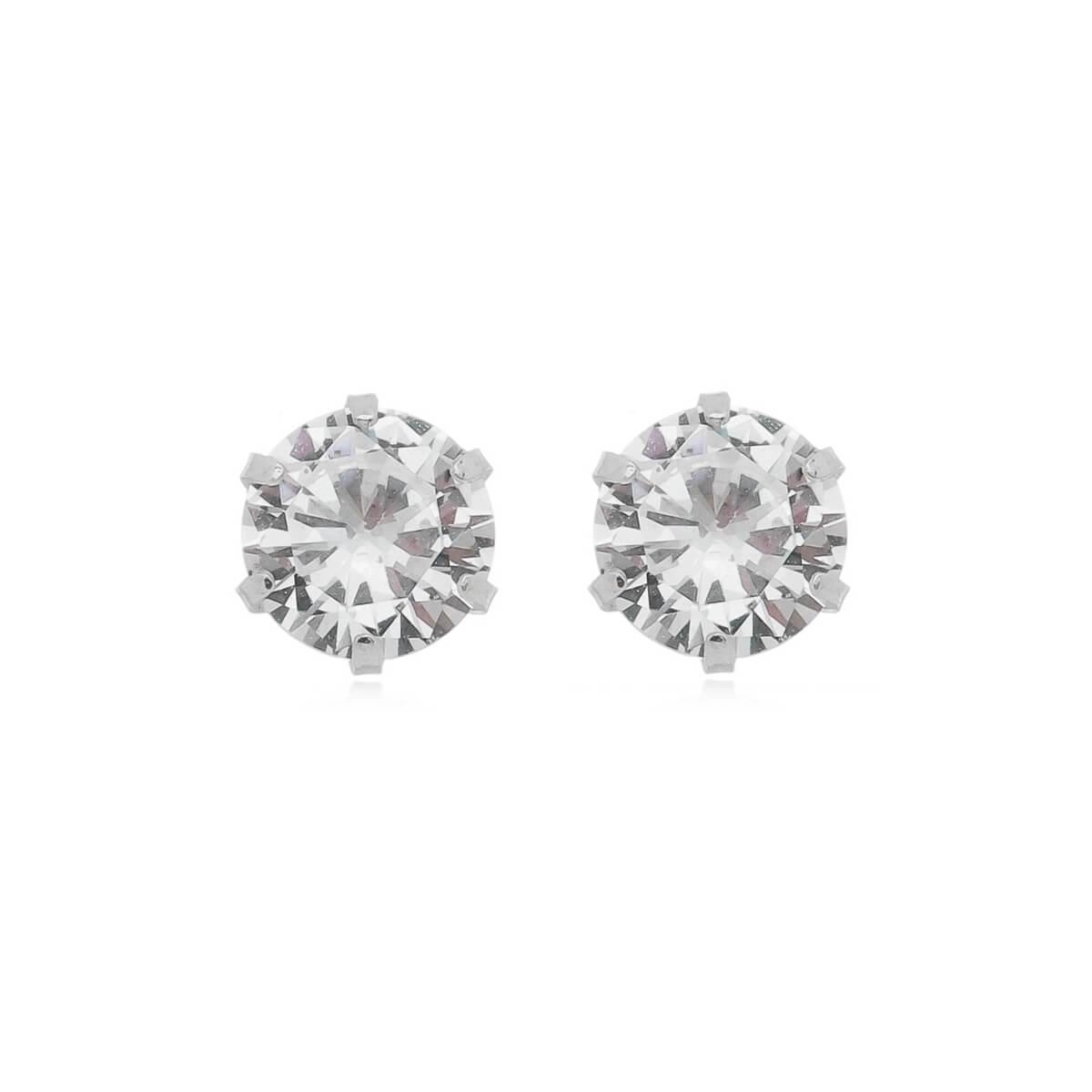 Brinco Prata Solitário Incolor 6mm Prata 925