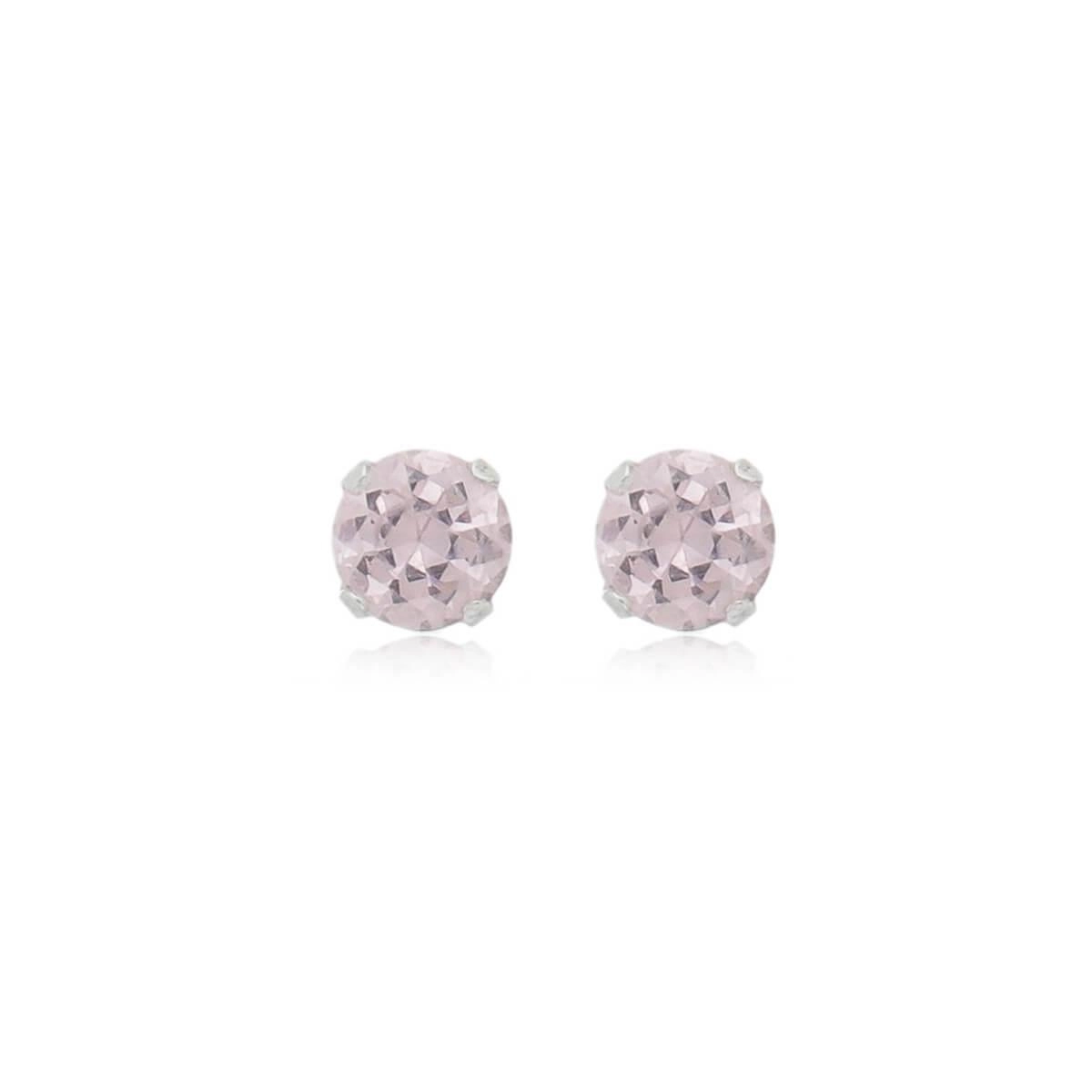 Brinco Prata Solitário Rosa 3mm Prata 925