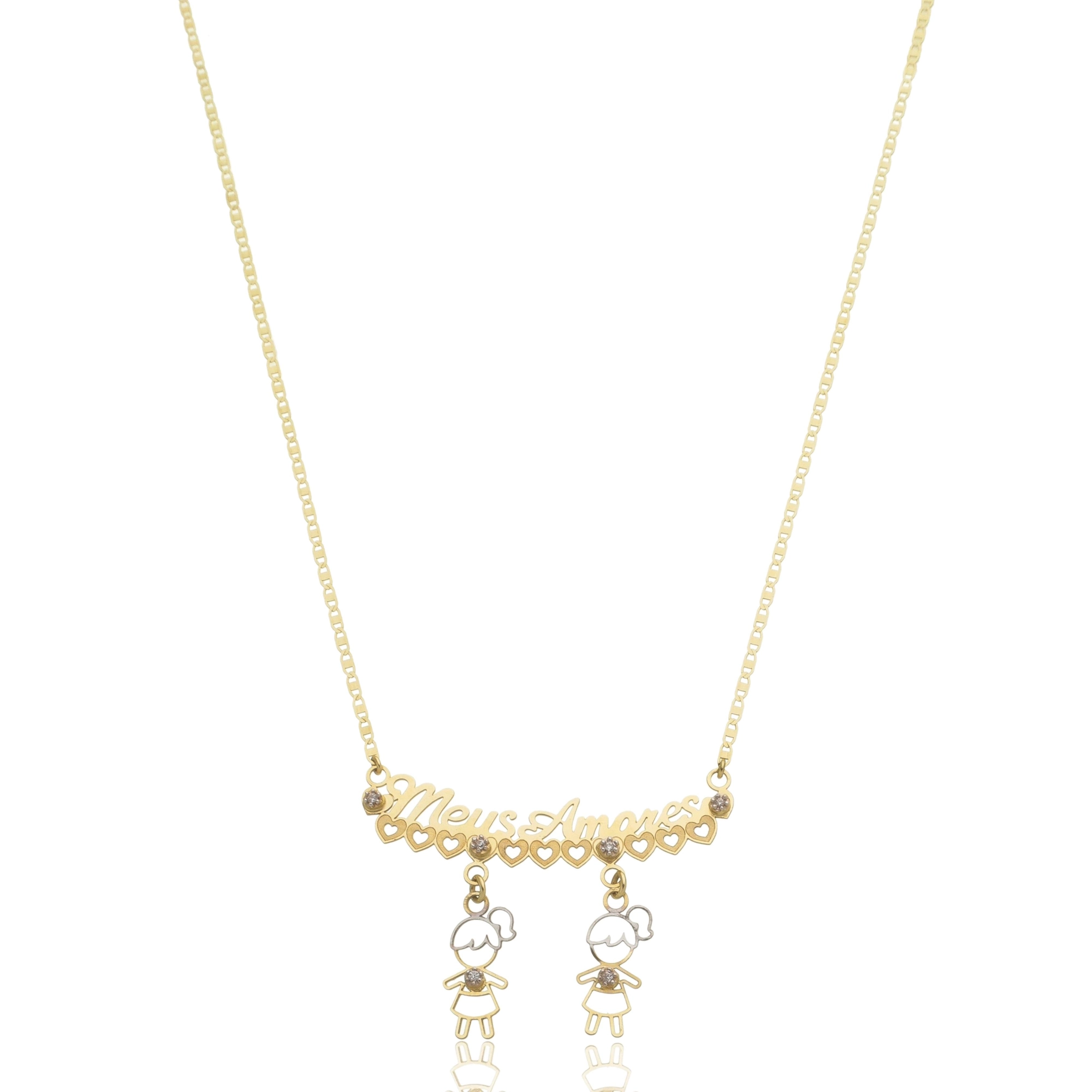 Colar Ouro 18k 45cm Meus Amores 2 Meninas