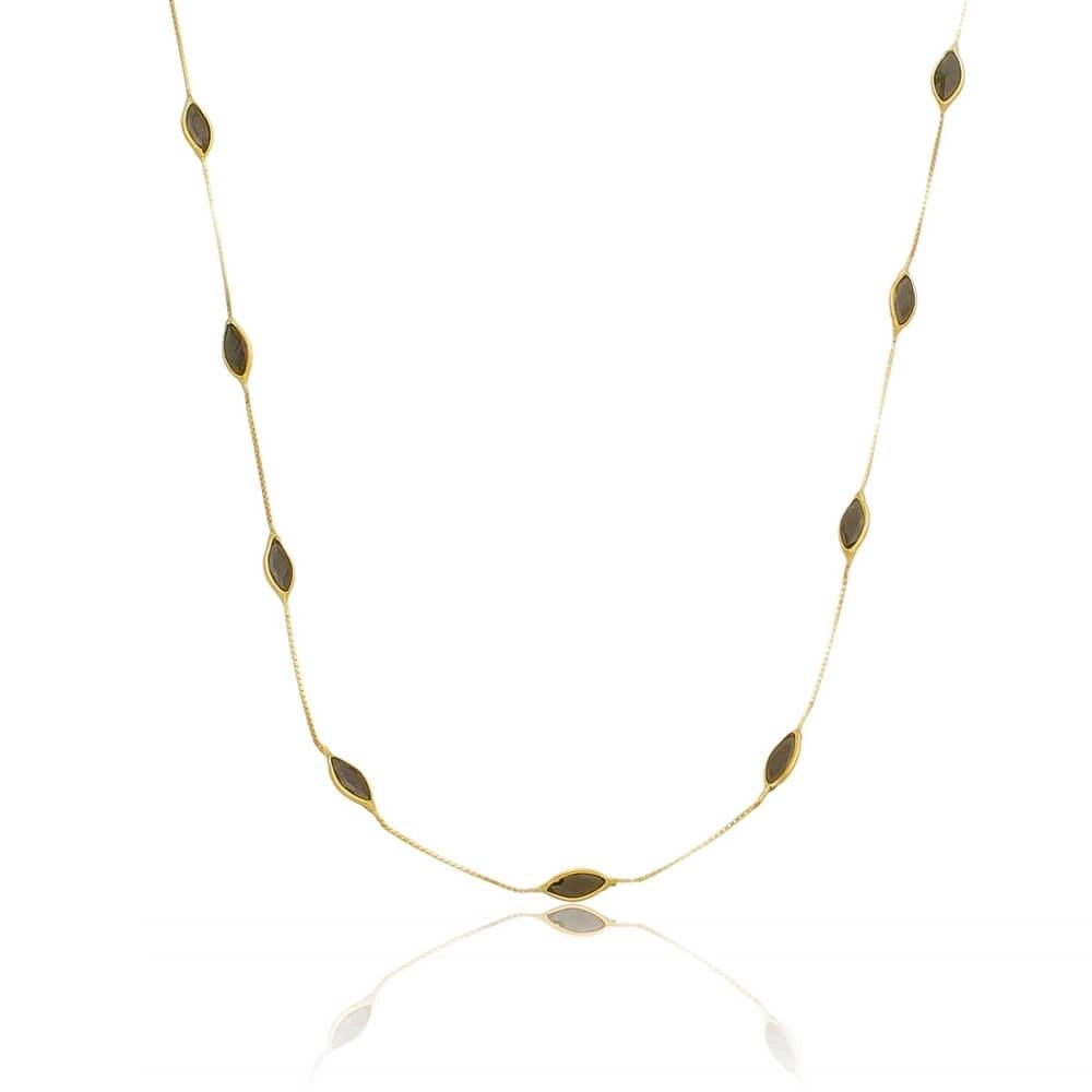 Corrente Ouro 18k Veneziana C/ Navetes Preto 45cm. Linda corrente em ouro com malha veneziana com pedrarias navetes pretas. Sugere elegância e delicadeza. Ideal para presentes.