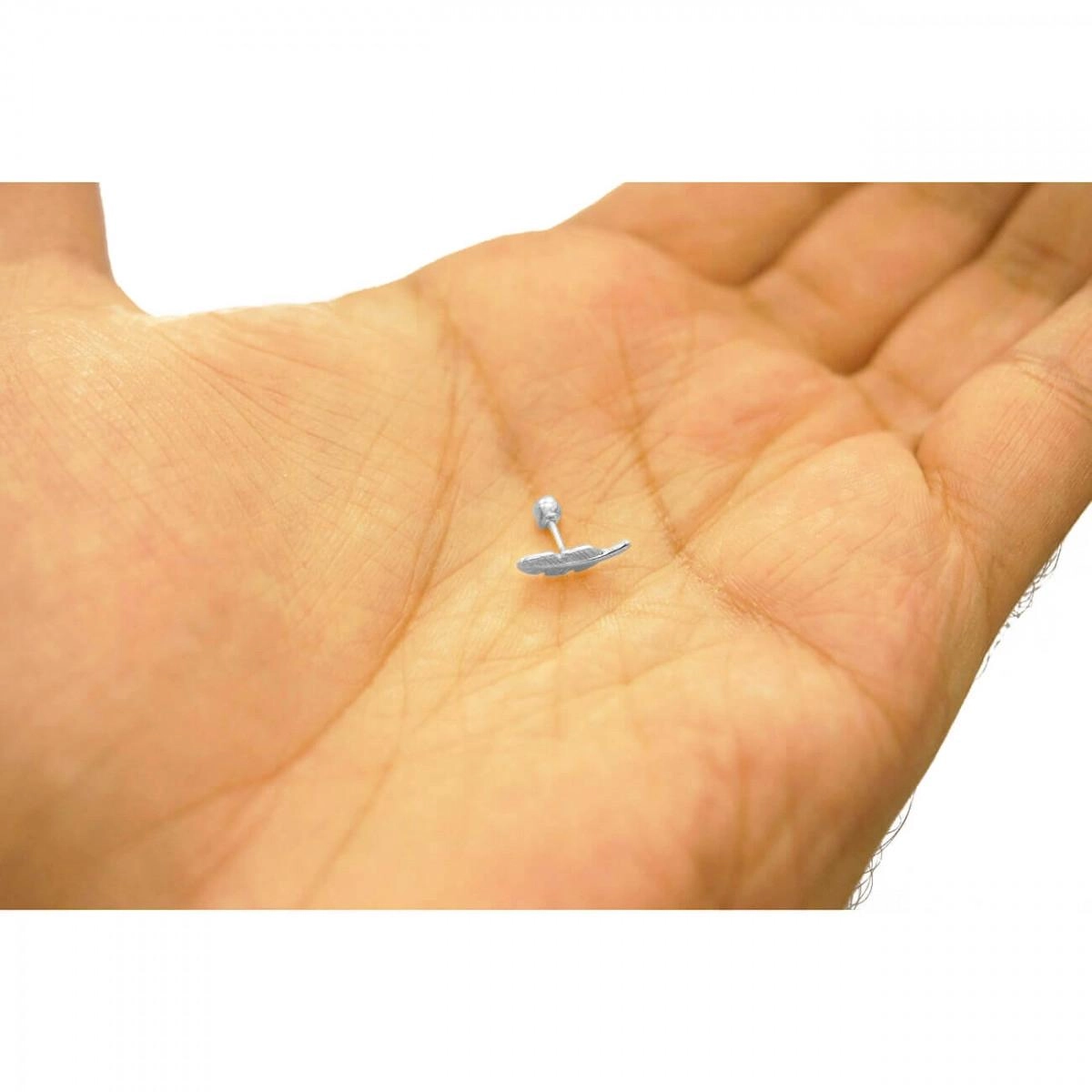 Piercing Orelha Prata 925 Tragus Pena 0.20 gramas. Peça elegante que sugere delicadeza e graciosidade.